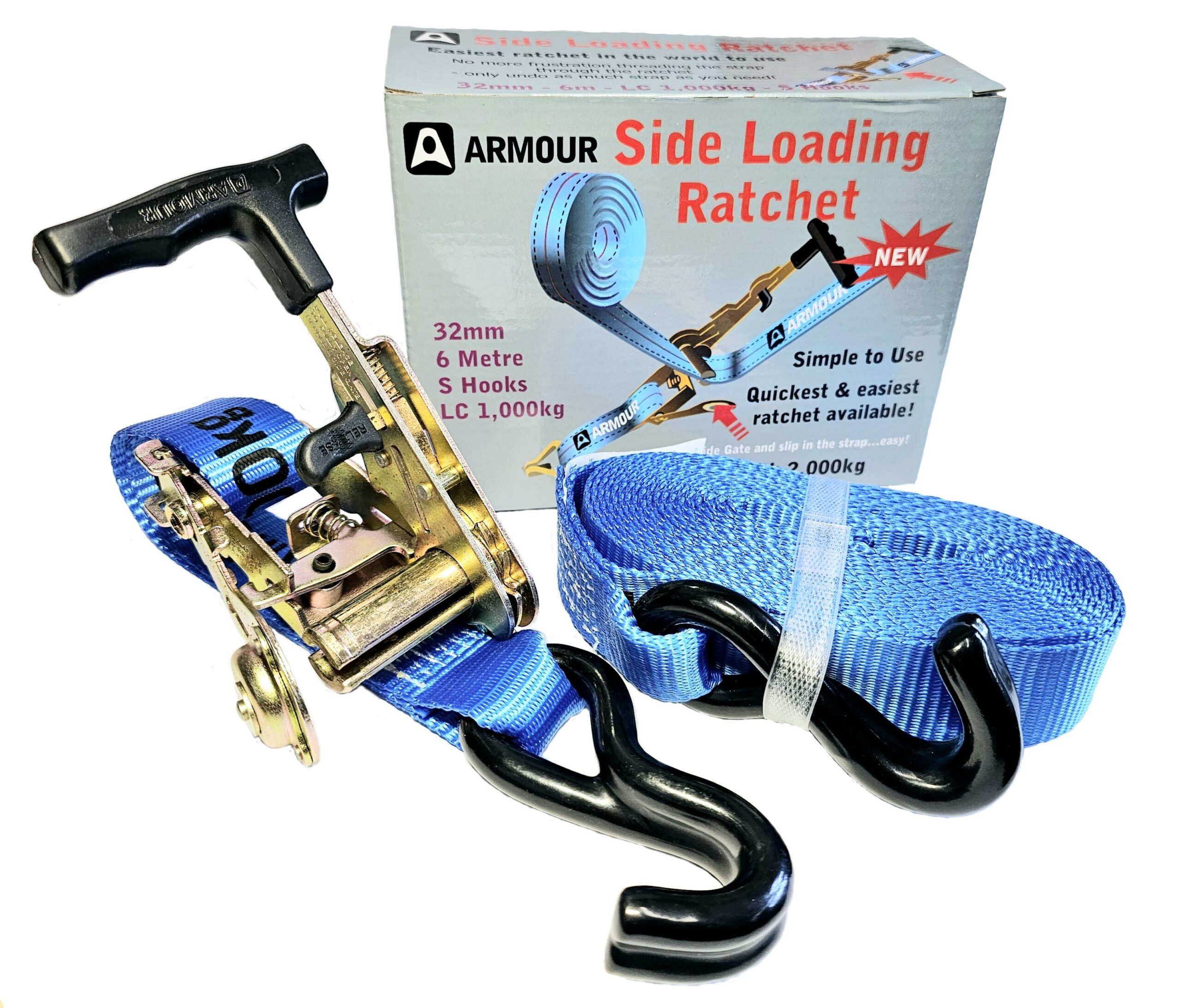 1.0T QUICK Side Loading Ratchet Tie Down 32mm 6m c/w S Hks