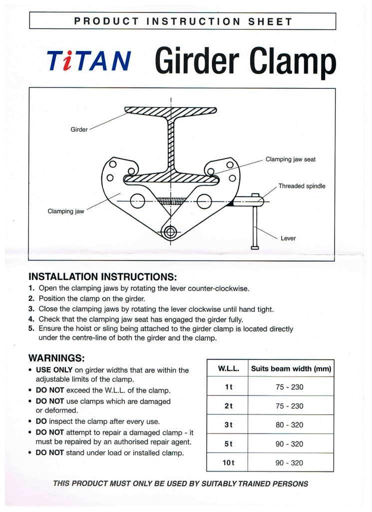 PLEASE NOTE: These TiTAN clamps are not rated of any side loading “Straight Vertical” Lift only…