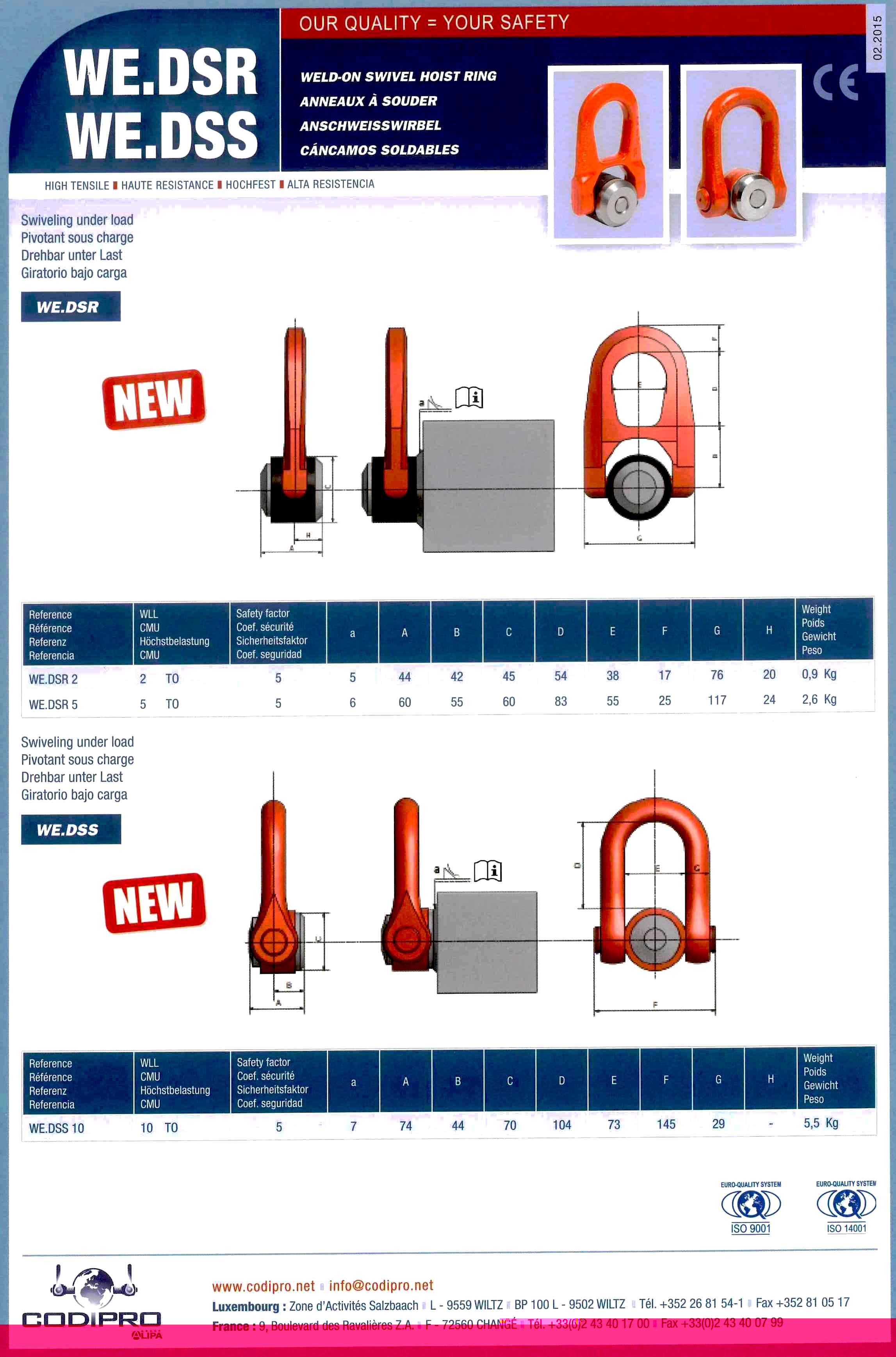 * Listed WLL at 0 & 90 Degrees