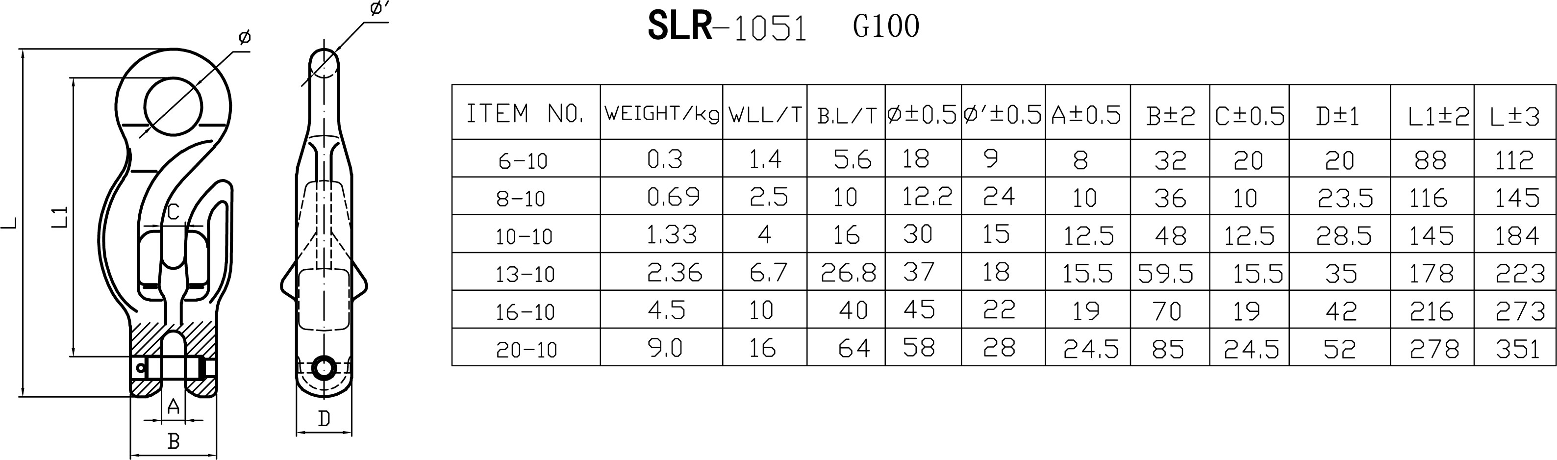 | Rating | 10mm 4T, 13mm 6.7T, 16mm 8T, 20mm 16T, 6mm 1.12T, 8mm 2.5T |