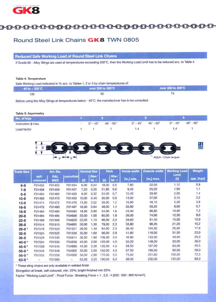 NOTE: All chain is cut to leg length “MINUS” one link. We only sell per “FULL” metre.