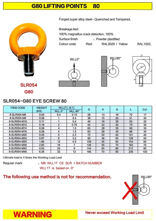 | Size / Rating | M10 – 1.0T WLL, M12 – 2.0T WLL, M14 – 4.0T WLL, M16 – 4.0T WLL, M18 – 5.0T, M20 – 6.0T WLL, M24 – 8.0T WLL, M30 – 12.0T WLL, M36 – 16.0T WLL, M42 – 24.0T WLL, M48 – 32.0T WLL, M6 – 0.40T WLL, M8 – 0.80T WLL |