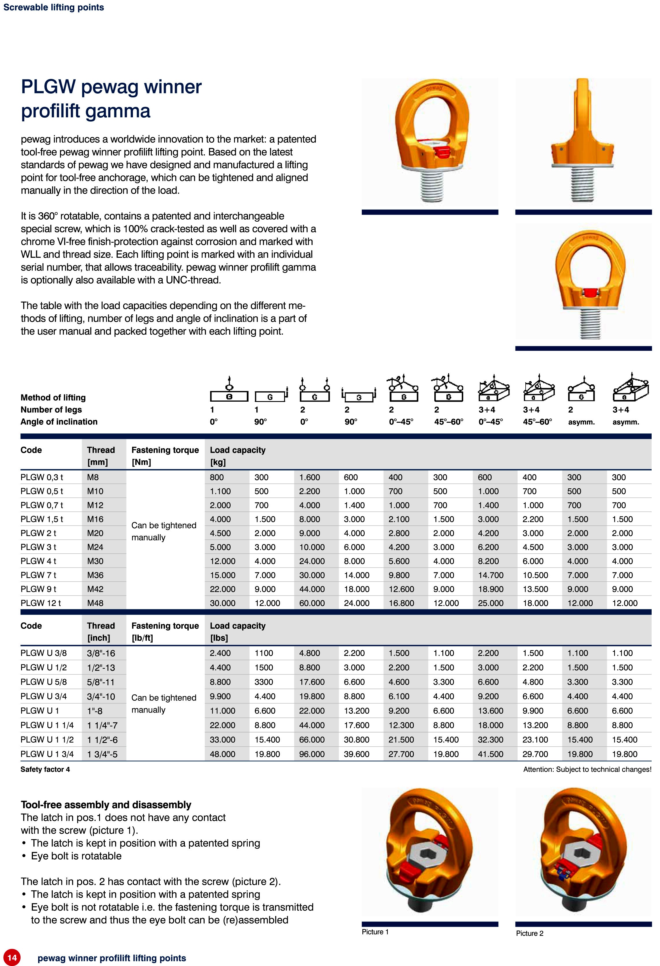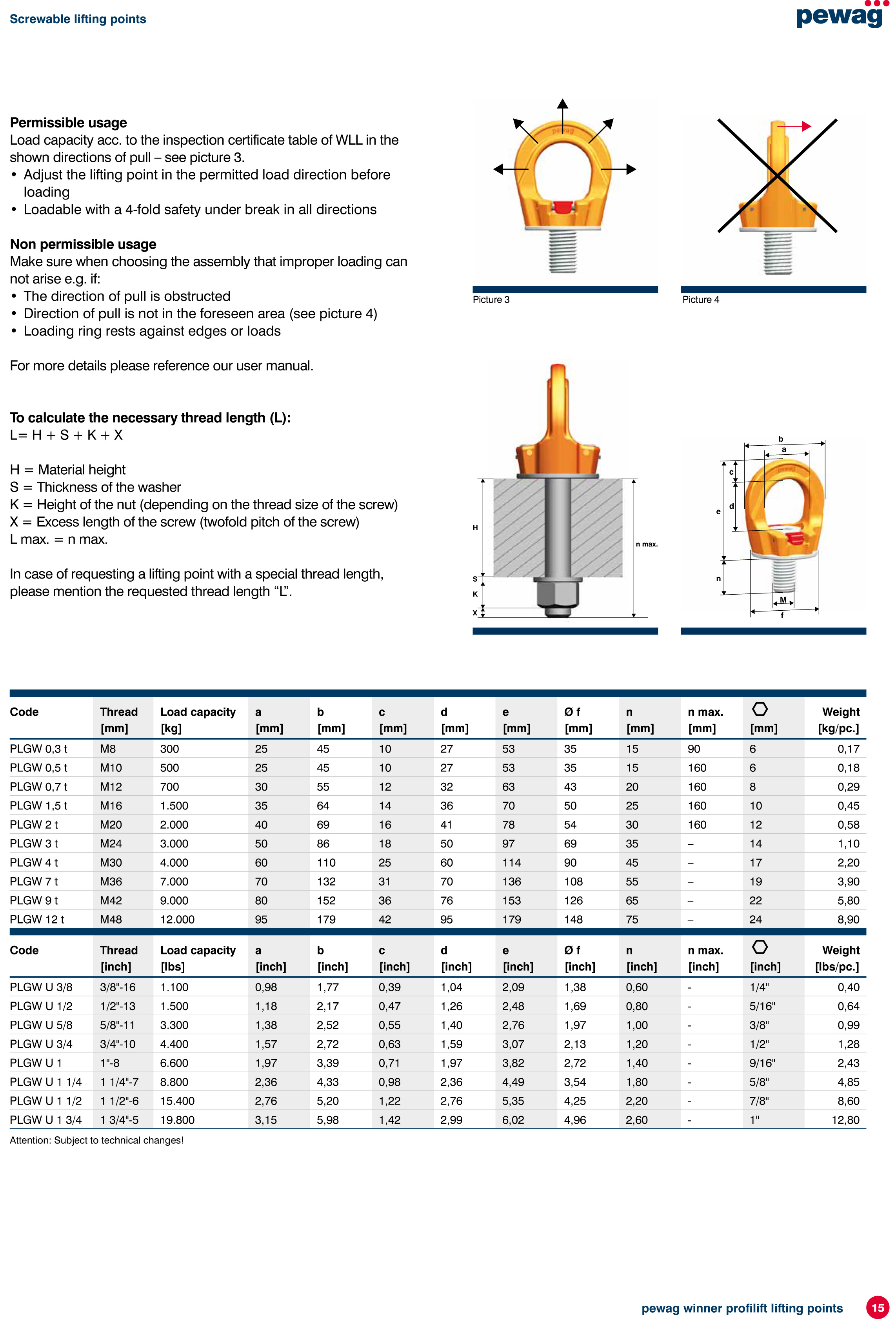 chrome VI-free finish-protection against corrosion and marked with WLL and thread size. Each lifting point is marked with an individual serial number, that allows traceability.