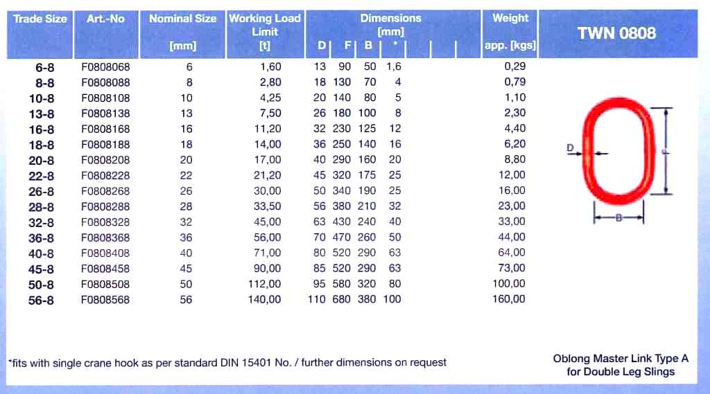 8mm Ring – 1Leg 2.00T or 2Leg 2.80T WLL @ 90Deg