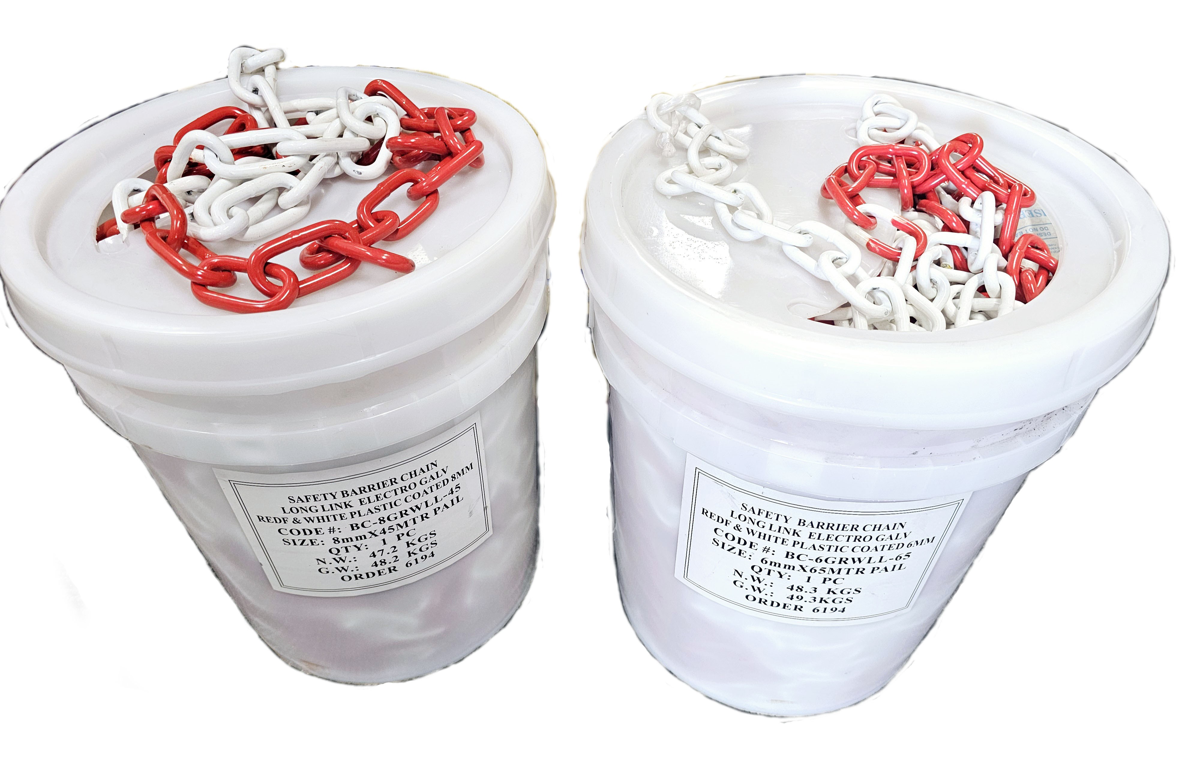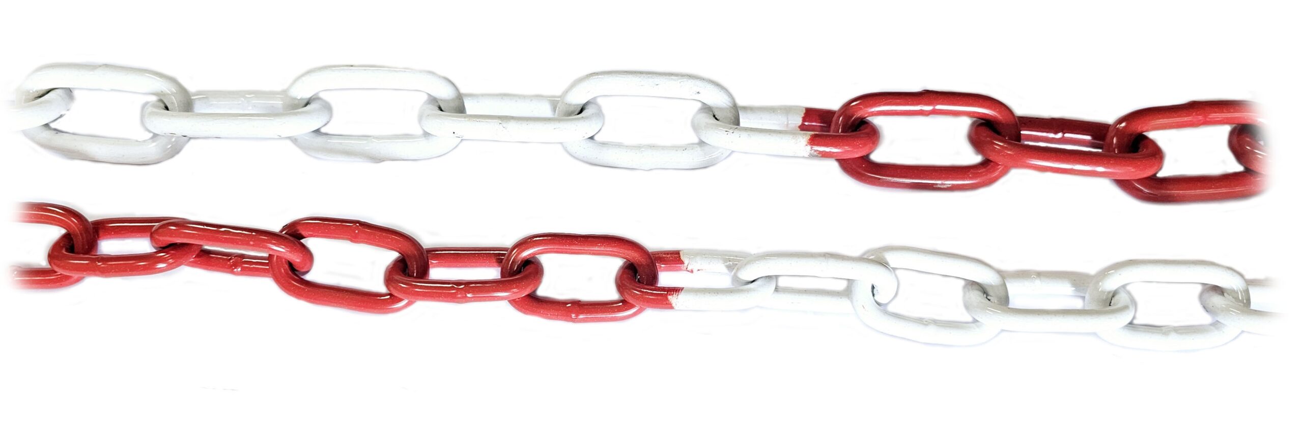 This "Safety Barrier" Long Link Steel Chain is Electro Galvanised with a Plastic Coated Red & White finish.