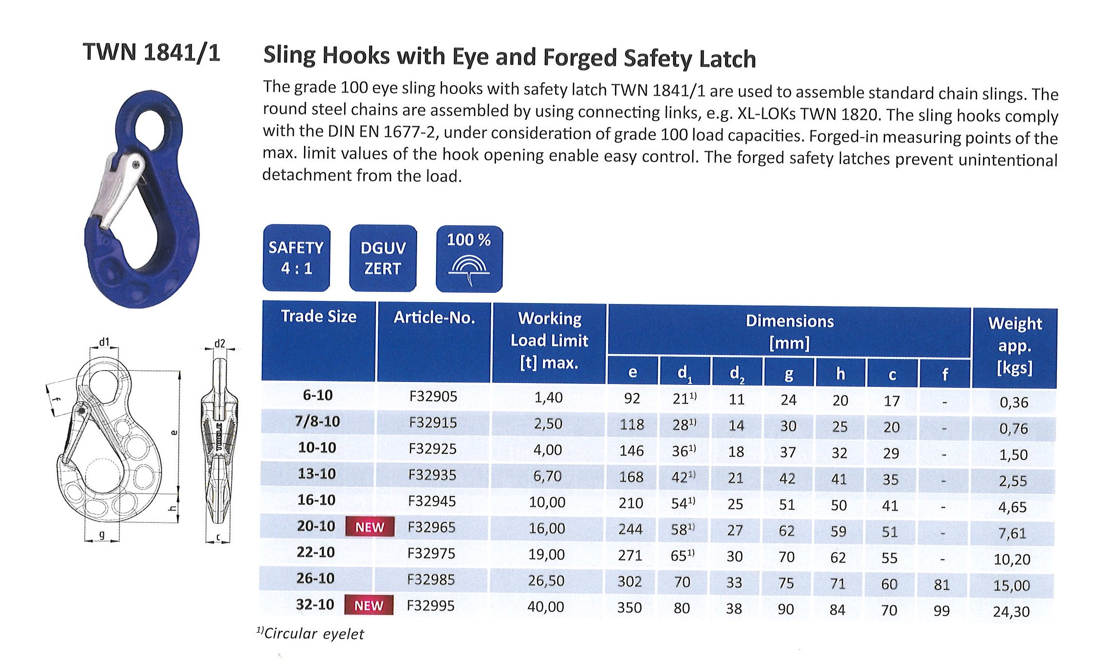 Thiele G100 Eye Sling Hook C/w Forged Latch
