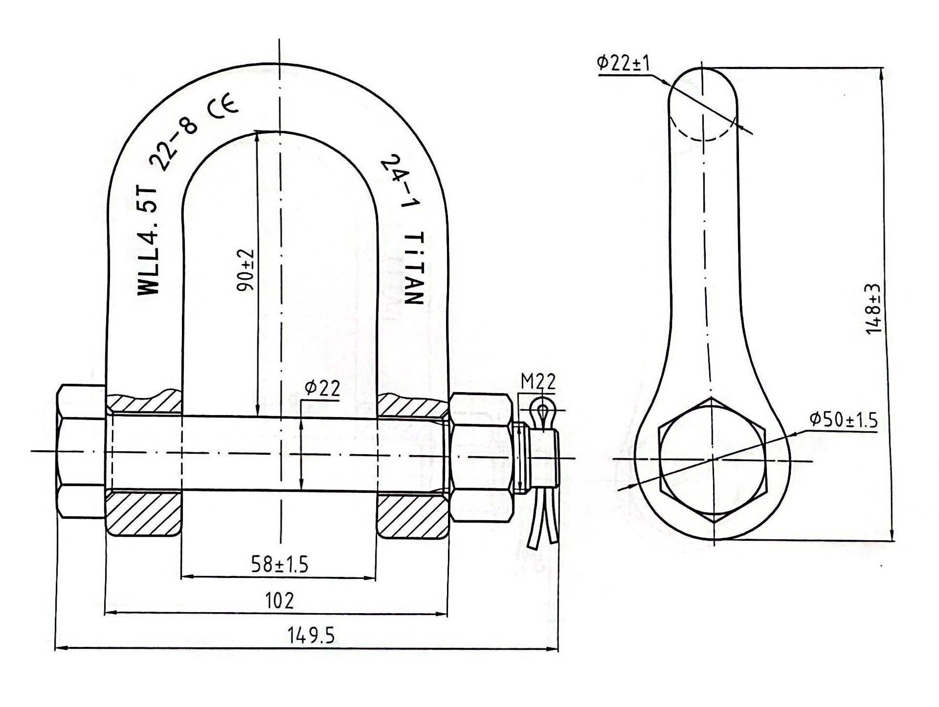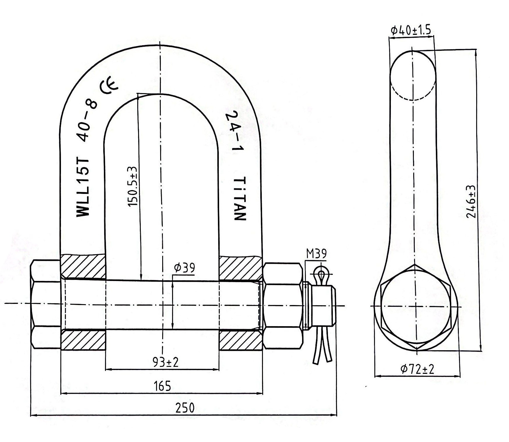 16mm x 37mm IW – 2.0T WLL, 22mm x 58mm IW – 5.0T WLL, 30mm x 73mm IW – 8.0T WLL, 40mm x 93mm IW – 15.0T WLL